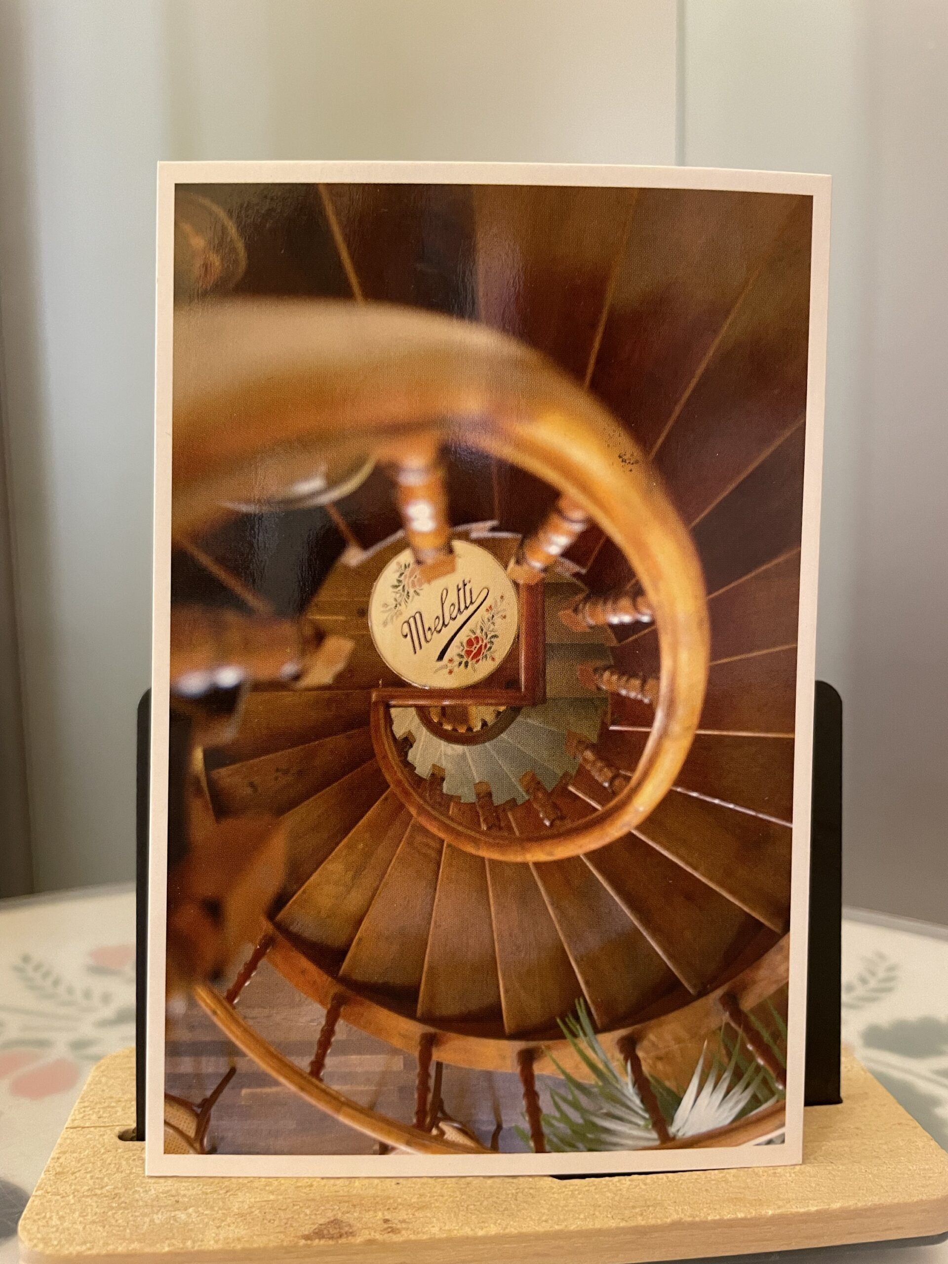 Cartolina storica Scala a chiocciola di legno Caffè Meletti