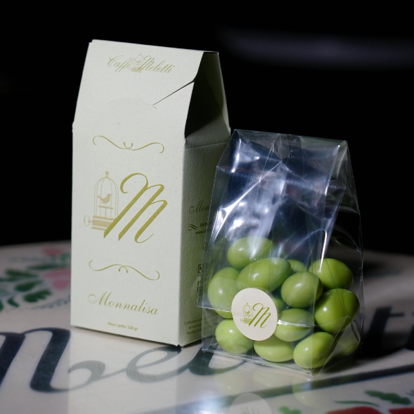 Delizia il tuo palato con i nostri esclusivi Confetti Monna Lisa, una prelibatezza che incarna l’eleganza e il gusto distintivo del Caffè Meletti!