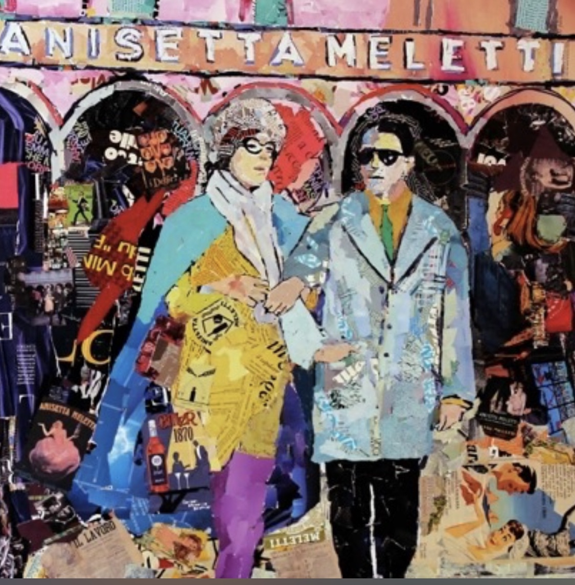 L’artista Pereyra ha rivisitato la locandina del film “Alfredo Alfredo” con Stefania Sandrelli e Dustin Hoffman, nella sua tecnica papier collé.